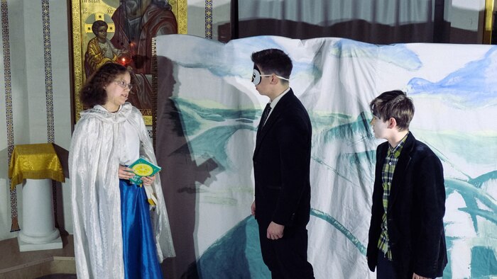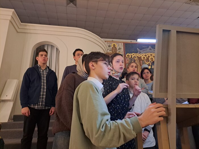 В воскресенье 10 февраля ученики Свято-Петровской школы и участники Клуба Волонтера сходили в РДКБ - спели службу и показали маленький спектакль.О службе написала Мария Никитина: "До этого почти никто из нас не бывал в РДКБ.И я сильно удивилась, когда вошла в храм , во-первых, рано утром в воскресенье, когда ты едешь ещё и не в свой храм, ощущаешь себя в некотором отрыве от реальности, но это ощущение сразу пропало, стоило войти, и во-вторых, сам Храм был не совсем обычен, он был почти как древнегреческий амфитеатр: внизу Алтарь, а дальше ступеньки поднимаются и на них стоят люди. Не знаю кто как , но когда началась служба, я переживала сможем ли мы нормально спеть , ведь на спевке помимо регента было лишь несколько человек! Но вроде обошлось... Все остались довольны и чаепитие приятным аккордом дополнило нашу поездку".Благодарим за чуткое руководство нашим хором - Анну Ильяшенко.После Литургии волонтеры показали спектакль «Ковчег отходит ровно в восемь». Сюжет разворачивается вокруг трех пингвинов, которые живут на севере и рассуждают о Боге. Постановка, несмотря на небольшую продолжительность, зрителям понравилась: в зале был слышен добрый детский смех, они активно принимали участие в интерактивных частях".Благодарим нашего режиссера-постановщика - Анну Викентьевну Абрамян - и наших актеров: Колю Ильяшенко (6а), Алису Ильяшенко (7а), Дашу Черепанову (9а), Колю Векленко (9а), Кешу Яблочкина (9а), Ваню Кузьминых (9а).